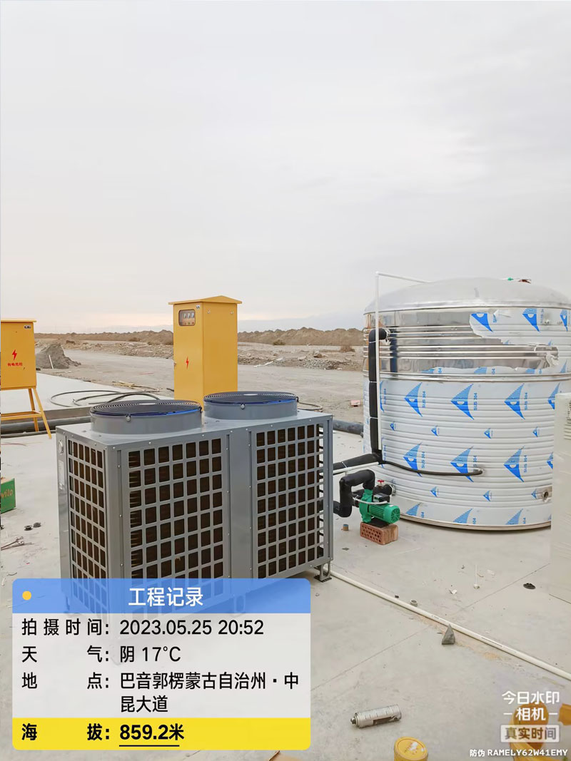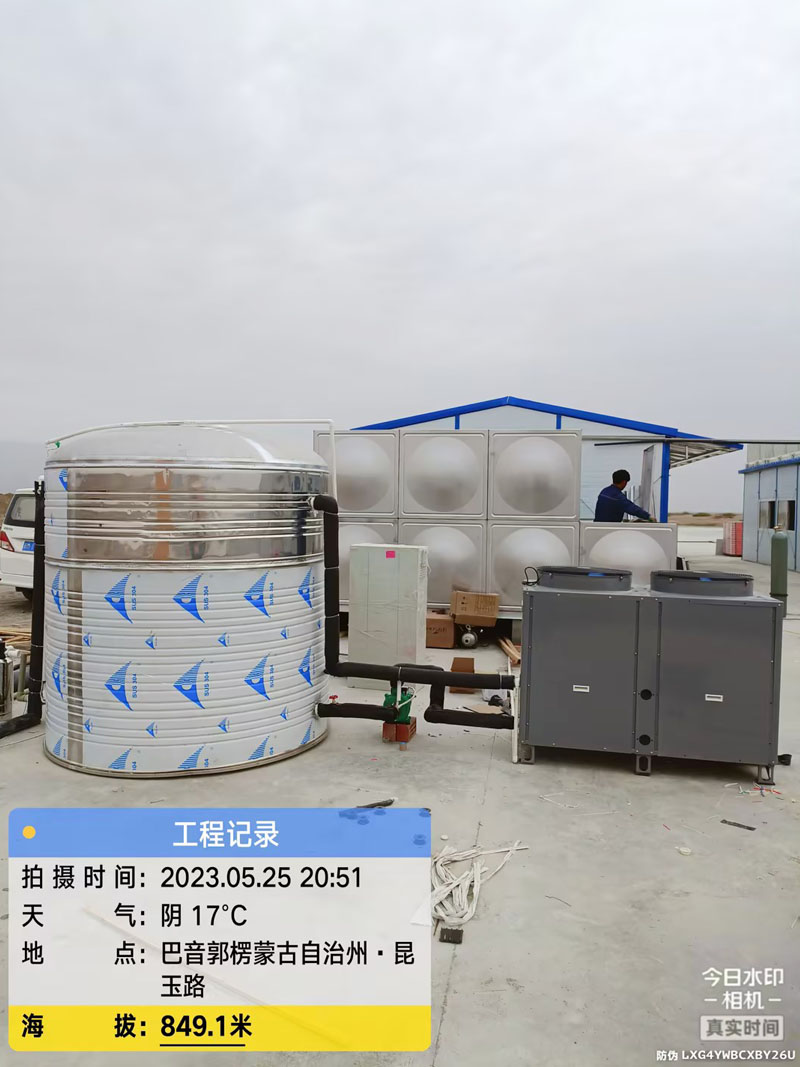 我司为新疆库尔勒巴音郭楞蒙古自治州一工地安装空气能热水器安装实拍: